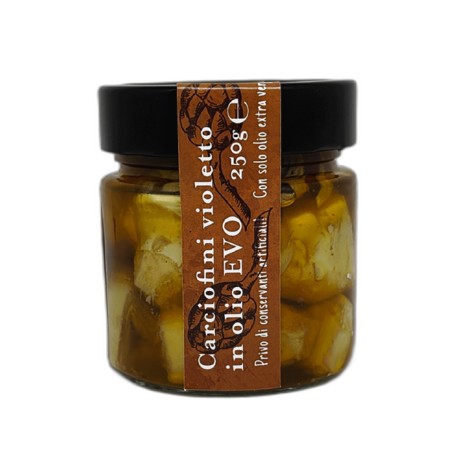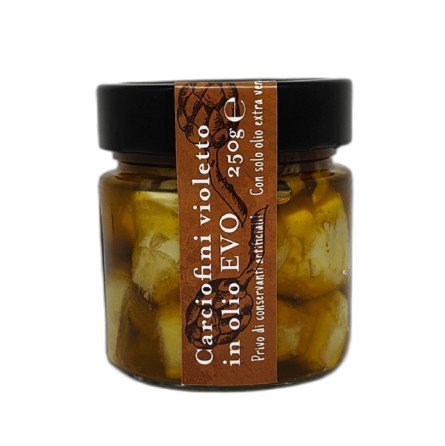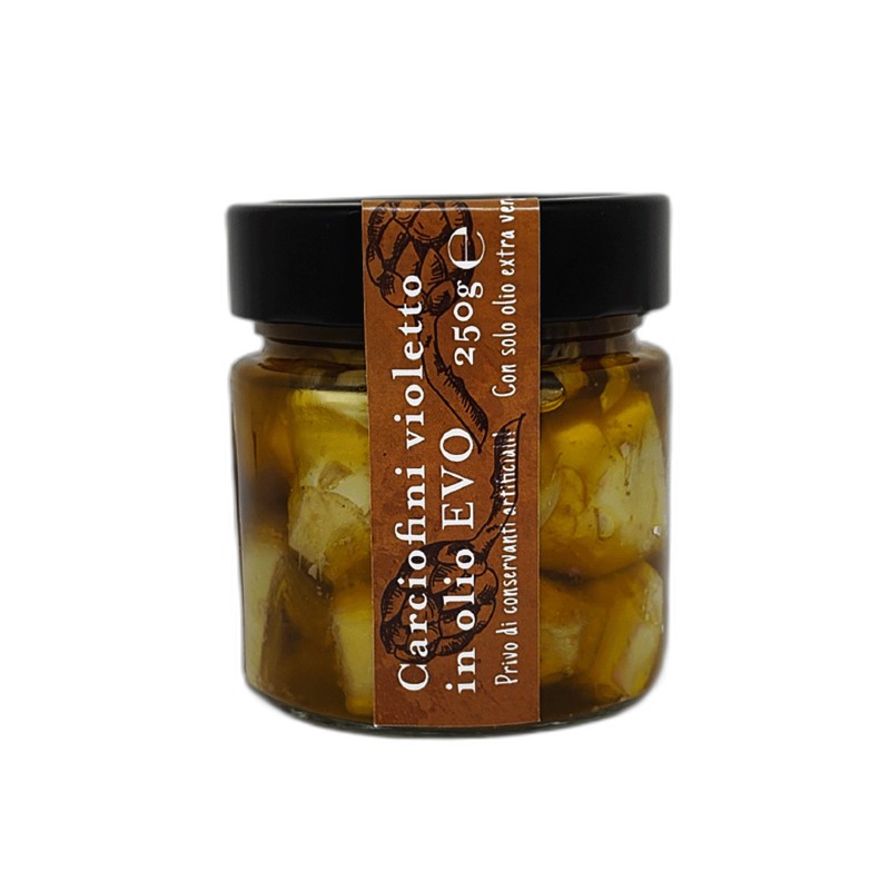 Violet artichokes are not to be confused with artichoke hearts; they are hand-processed and stemless, fresh and processed respecting the natural size of the product so as not to create unnecessary waste.